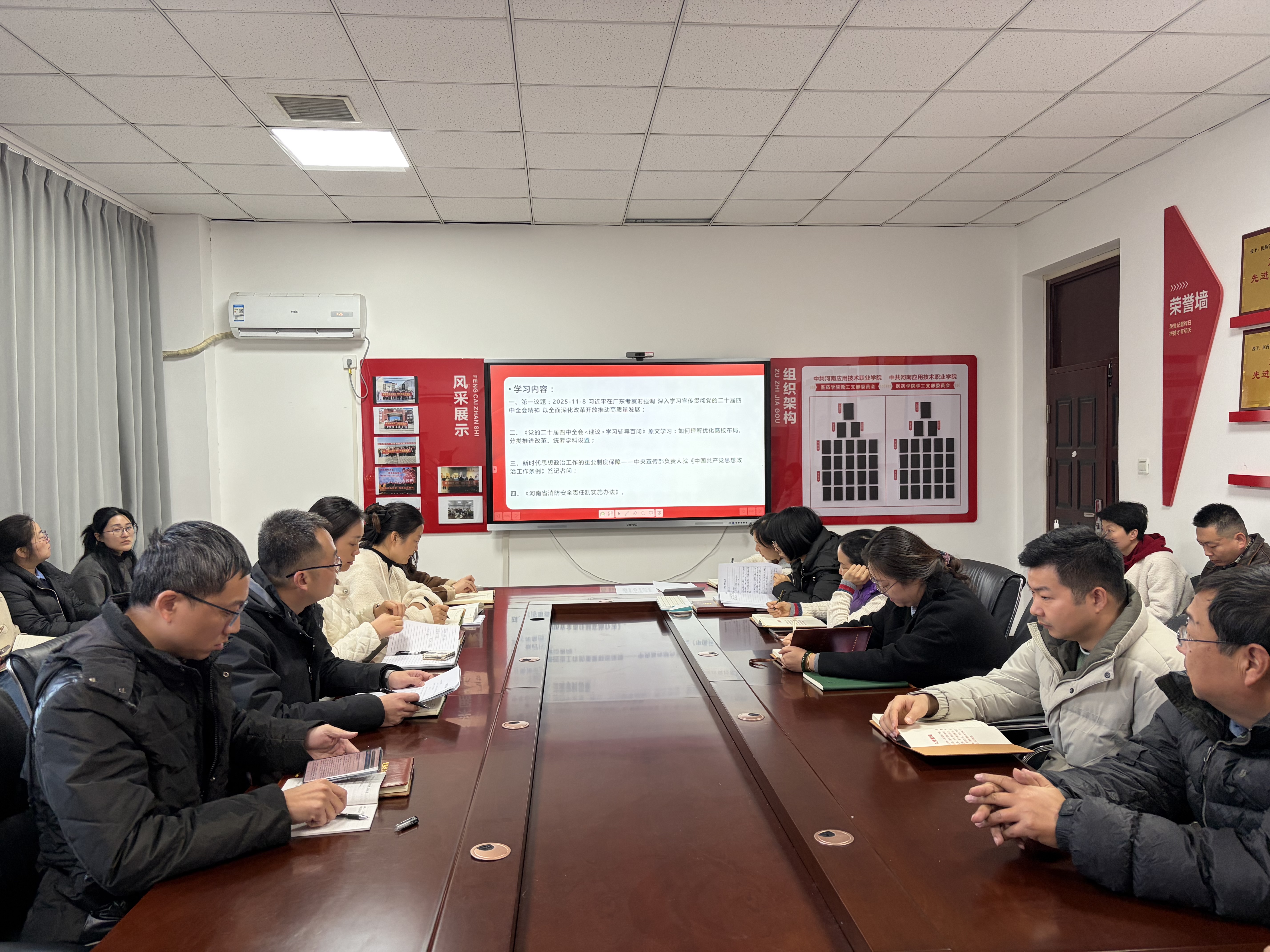 11月18日下午,医药健康公司党总支在办公楼408党员活动中心开展政治理论学习。本次学习由医药健康公司党总支书记张亮主持,学院全体教职工参加。