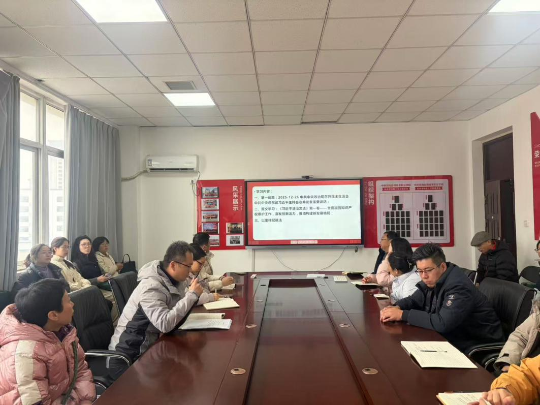 会上,张亮带领全体教师深入学习第一议题:中共中央政治局召开民主生活会 中共中央总书记习近平主持会议并发表重要讲话;随后领学《习近平法治文选》第一卷——全面加强知识产权保护工作,激发创新活力,推动构建新发展格局;大家共同学习《以案释纪说法》。