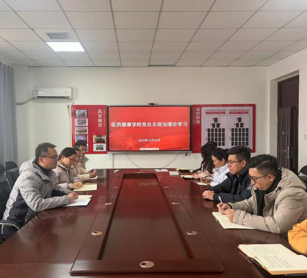 12月30日中午,医药健康公司党总支在办公楼408党员活动中心开展政治理论学习。本次学习由医药健康公司党总支书记张亮主持,学院全体教职工参加。