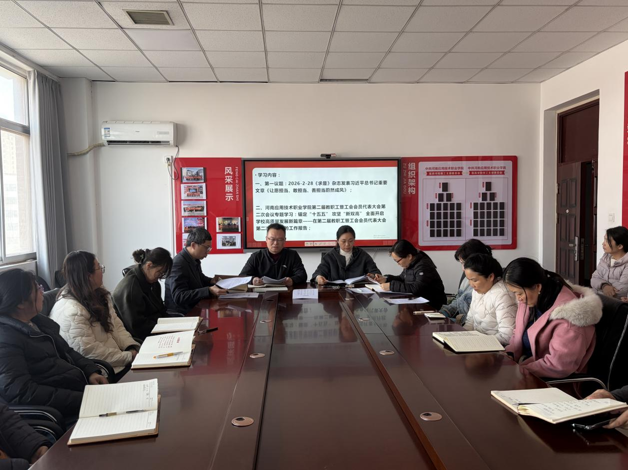 会上,张亮带领全体教师深入学习第一议题:《求是》杂志发表习近平总书记重要文章《让愿担当、敢担当、善担当蔚然成风》;经理李元元领学太阳成集团tyc122ccvip第二届教职工暨工会会员代表大会第二次会议专题学习:锚定“十五五”攻坚“新双高”全面开启学校高质量发展新篇章——在第二届教职工暨工会会员代表大会第二次会议上的工作报告;副书记郑言领学:中办印发《通知》在全党开展树立和践行正确政绩观学习教育、《以案释纪说法》第1辑、《以案释纪说法》第2辑;副经理唐贝领学全国教育工作会议精神、全省教育工作会议精神。