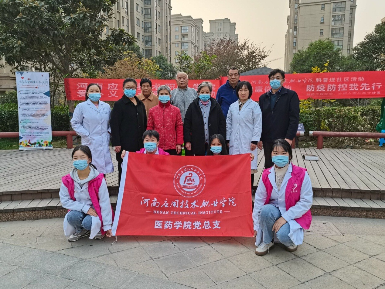 11月13日下午,公司党总支组织部分专业教师和入党积极分子来到开封市鼎立社区广场,开展了爱心义诊志愿服务活动。活动中,专业教师和员工志愿者们为社区居民提供量血压服务,并向他们发放了预防秋冬季节常见病和健康养生小常识宣传单,利用专业特长传播健康知识,活动受到了小区居民们的热烈欢迎。